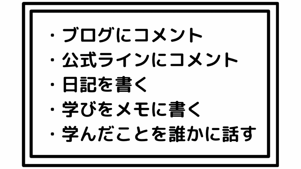 例)学んだことを紙に書いて◯◯◯プットする。